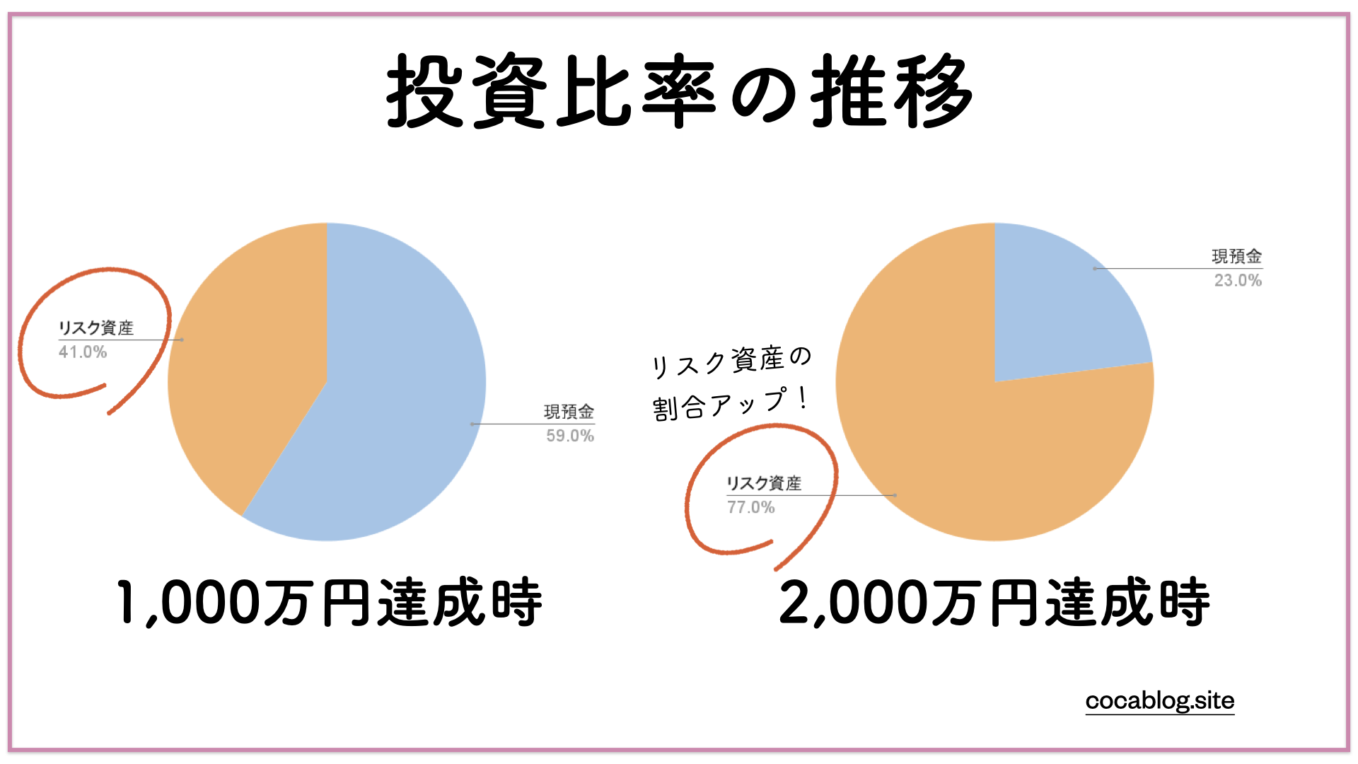 1,000万円到達時:投資比率41%→2,000万円到達時:投資比率77%