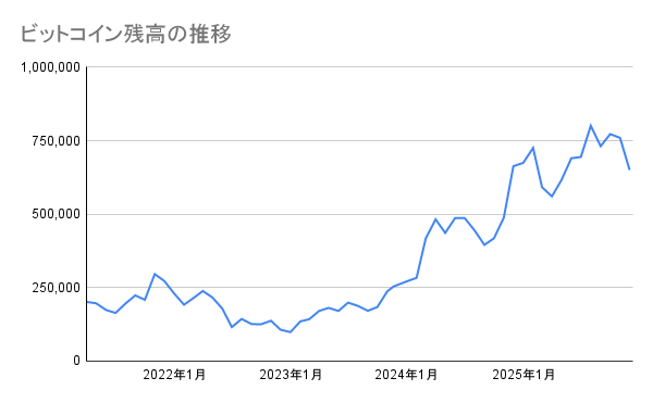 下図はビットコインの残高推移です。